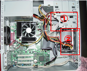 ケース形状にもよりますが、大抵下写真の①か②の位置にハードディスク