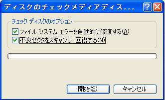 2カ所のオプションにチェックを入れ [開始] をクリック