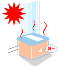 ●暖房器具の近く・・・・・・・・・・反射熱で高温、乾燥するので注意!