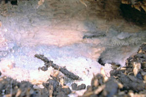 また、カブトムシの幼虫が食べながらくり抜いた空洞には、カビが出来て