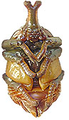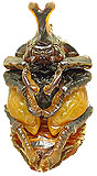 穴が出来ると上の写真の様なオレンジ色の蛹(さなぎ)へと体を変態させます。